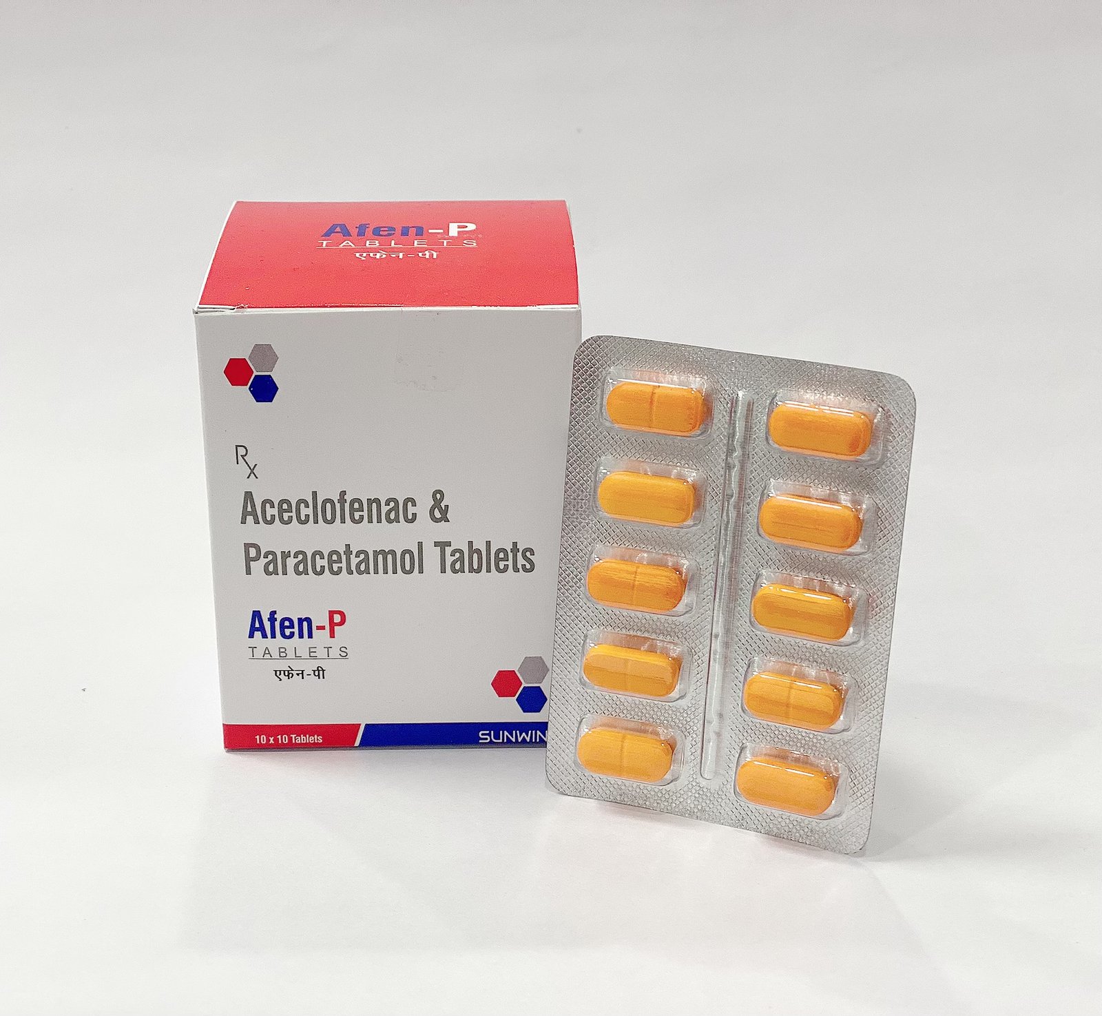 Afen P 100 mg/500 mg Tablet is a pain-relieving medicine. It is used to reduce pain and inflammation in conditions like rheumatoid arthritis, ankylosing spondylitis, and osteoarthritis. It may also be used to relieve muscle pain, back pain, toothache, or pain in the ear and throat.