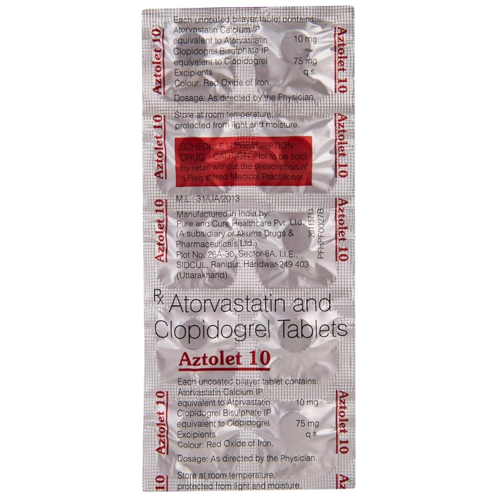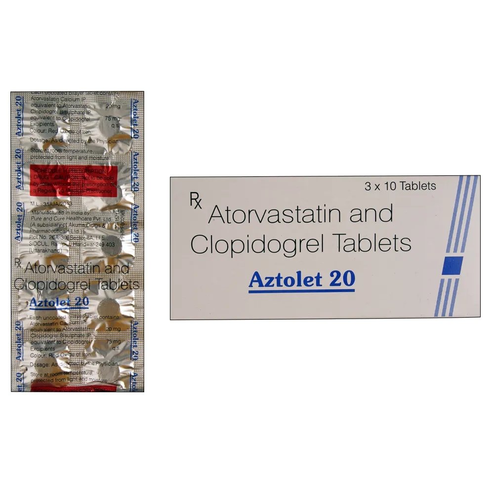 Aztolet Tablet is a combination of two medicines: Atorvastatin and Clopidogrel, which prevents heart attack and stroke.