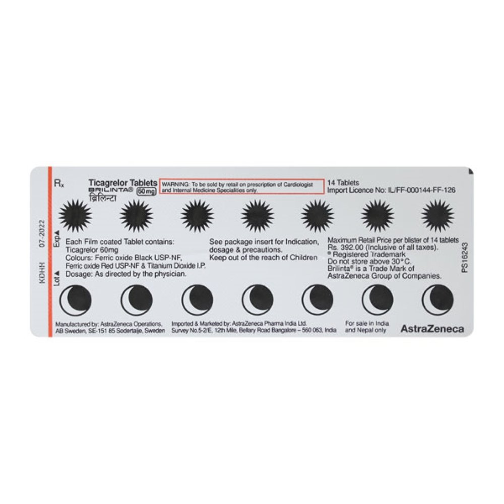 Brilinta Tablet is also used to treat people with a recent heart attack or severe heart-related chest pain (unstable angina) who have undergone stenting of the heart. It helps to prevent serious heart-related problems like having another heart attack, stroke, or formation of blood clots in stents in such people.