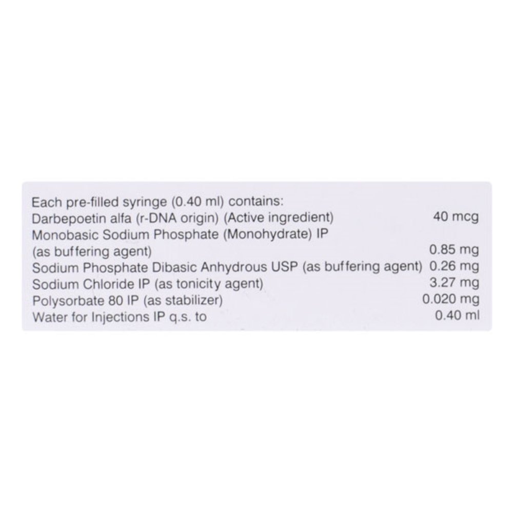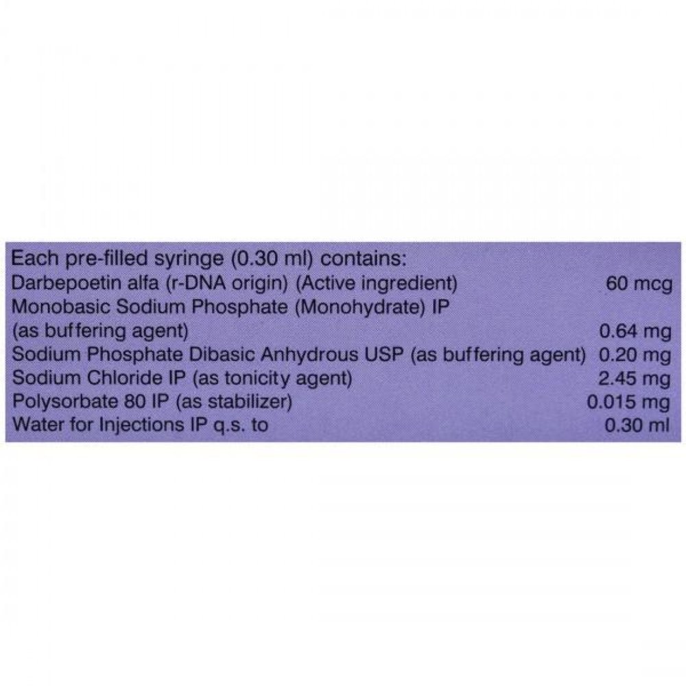 Dargen Injection is used in the treatment of anemia that may have occurred due to chronic kidney disease or chemotherapy. It works by stimulating the bone marrow to produce more red blood cells.