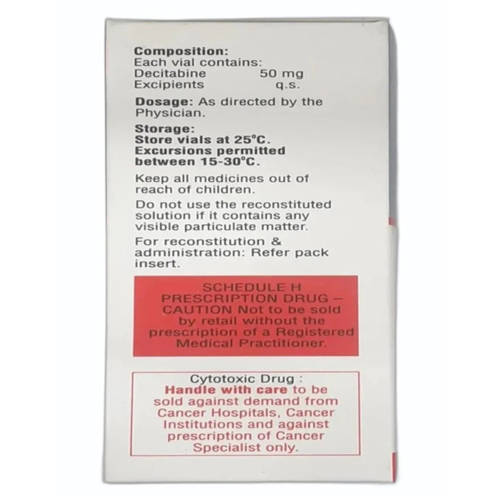 Deczuba 50mg Injection is also used with certain other medicines as part of combination chemotherapy. It is given as an injection into the vein under the supervision of a doctor. Your doctor will decide what dose is necessary and how often you need to take it. This will depend on what you are being treated for and may change from time to time. You should take it exactly as your doctor has advised. Taking it in the wrong way or taking too much can cause very serious side effects. It may take several weeks or months for you to see or feel the benefits but do not stop taking it unless your doctor tells you to.
