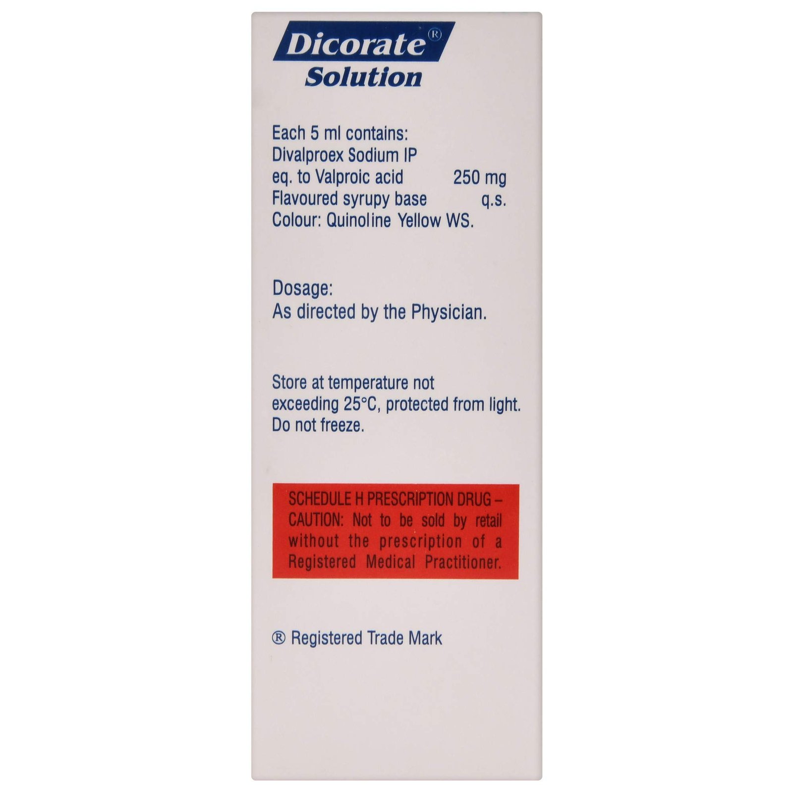 Dicorate Solution is a medicine used to treat epilepsy. It helps prevent and control seizures (fits). It is also used in the prevention of migraines. Occasionally, it may also be used to treat bipolar disorder.