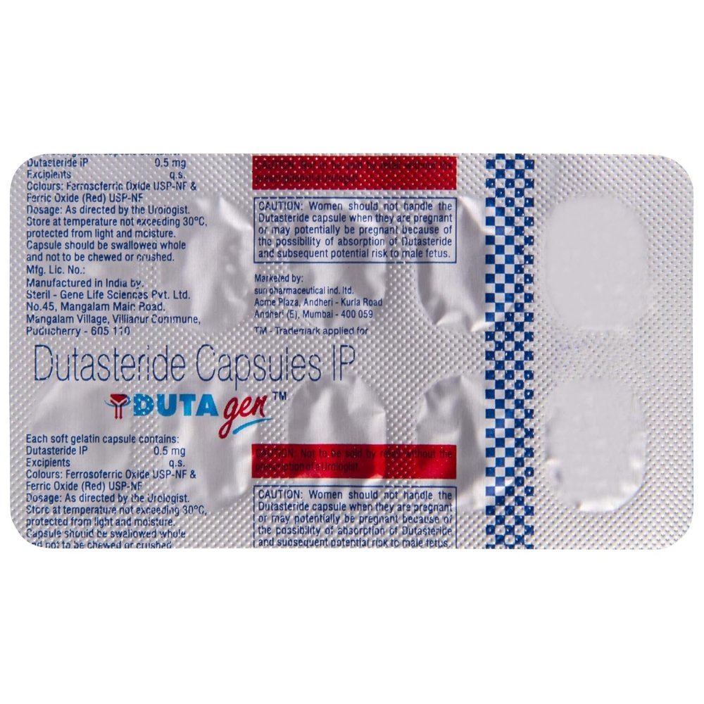 Dutagen Capsule is a 5-alpha reductase inhibitors. It blocks an enzyme which is necessary to change testosterone to another hormone that causes the prostate to grow. As a result, it helps to shrink the prostate and relieve the symptoms like difficulty in passing urine.