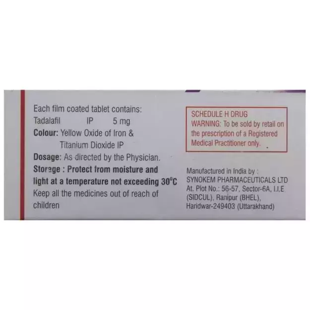 Efil 5mg Tablet can be taken with or without food. Take it in the dose and duration as advised by your doctor. Do not take more than the recommended dosage. The medicine will only help you to get an erection if you are sexually stimulated. Take it about 30 minutes to one hour before you plan to have sex. Only take it if you need it and it has been prescribed to you by a doctor.Common side effects of this medicine include headache, dizziness, flushing, indigestion, nasal congestion, muscle and back pain, and vision disturbances. Let your doctor know if any of these side effects do not go away on their own or bother you. They may be able to suggest ways to reduce or treat the side effects.