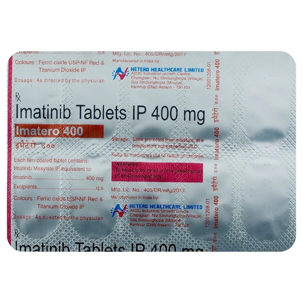 Imatero Tablet is also used for treatment of a skin tumor called dermatofibrosarcoma protuberans and a type of bone marrow condition called aggressive systemic mastocytosis. The medicine should be taken with food. Take it at the same time each day to get the most benefit. Continue taking it as long as your doctor advises for it. The duration of treatment varies according to your need and response to treatment. Taking it in the wrong way or taking too much can cause very serious side effects. It may take several weeks or months for you to see or feel the benefits but do not stop taking it unless your doctor tells you to.