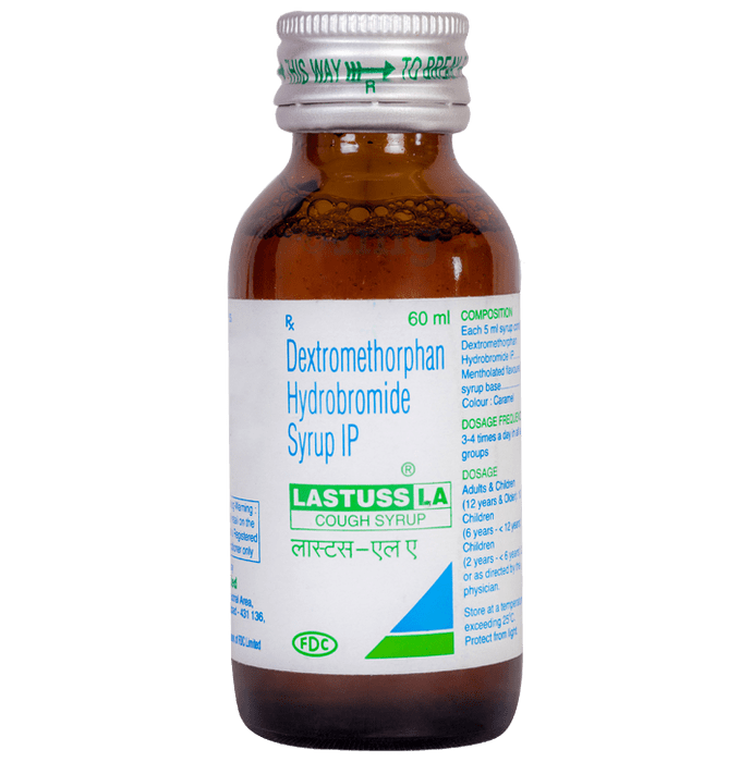 Lastuss LA Syrup is an antitussive medicine. It is used for the treatment of dry cough. It helps by reducing the activity of the cough center in the brain.