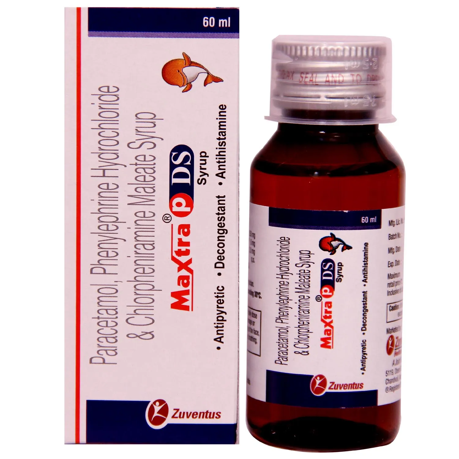Maxtra P DS Syrup is a combination medicine that effectively relieves symptoms of common cold such as blocked nose, runny nose, watery eyes, sneezing, and congestion or stuffiness. It helps to loosen thick mucus, making it easier to cough out. This makes it easier for air to move in and out. It shrinks the blood vessels and provides rapid relief that lasts for several hours.