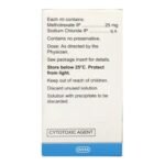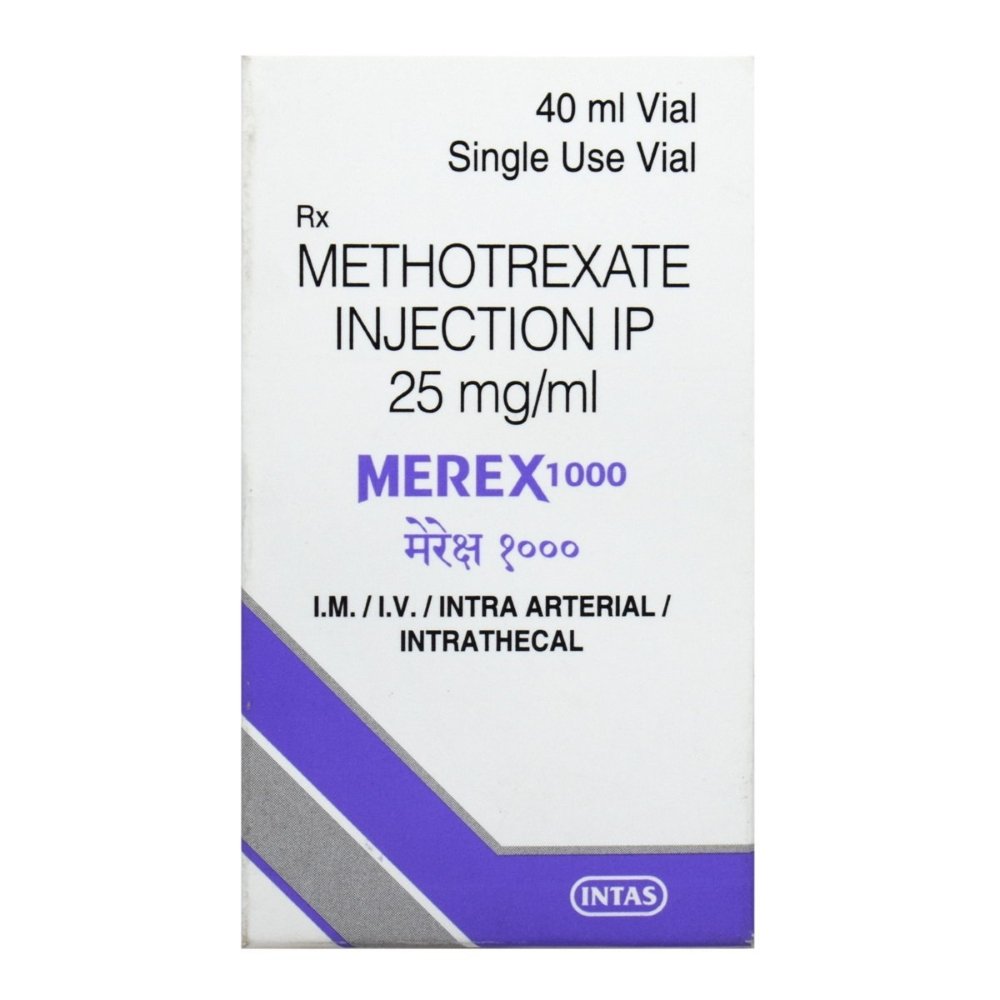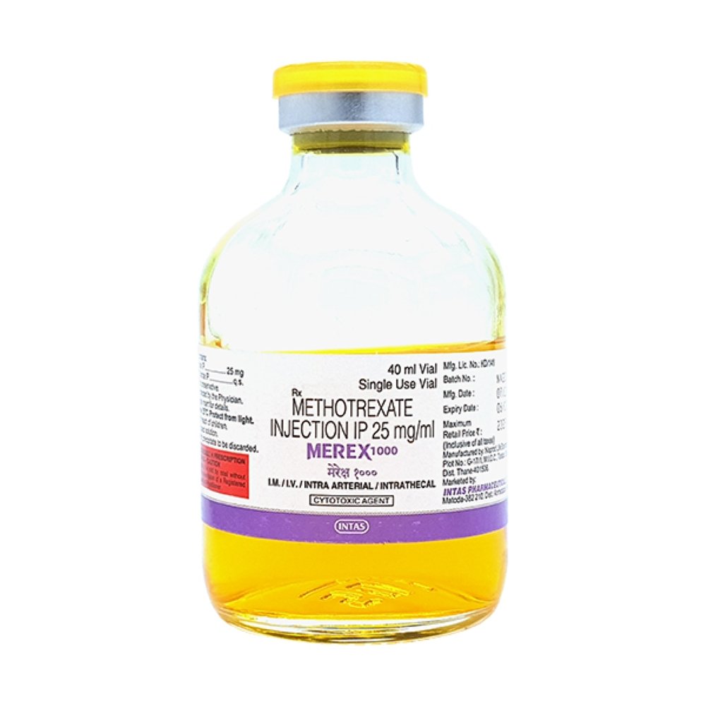 Merex Injection belongs to a group of medicines called antimetabolites and is referred to as a cytotoxic. It works by slowing the growth of cancer cells in the body. It is used to treat a wide range of cancers such as acute leukemias, non-Hodgkin’s lymphoma, and solid tumors found in breast, lung, bladder, head and neck as well as cervical, ovarian and testicular cancer. It may be given alone or in combination with other medicines. It is a potent and very toxic medicine and you should discuss the risks and benefits with your doctor. You should avoid drinking alcohol while having this treatment and drink plenty of water to stay hydrated.