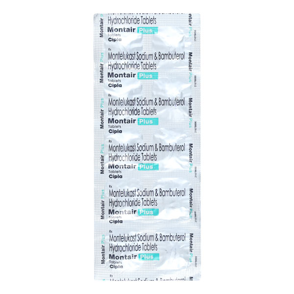 Montair Plus Tablet is used in the treatment of asthma (wheezing and shortness of breath). It relaxes the muscles of the air passages and makes it easier to breathe.