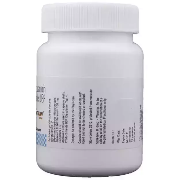 Niftran 100mg Capsule is an antibiotic that fights bacteria. It is used to treat and prevent bacterial infections of the urinary tract. It works by killing the bacteria that cause such disease. But, it will not treat a viral infection.