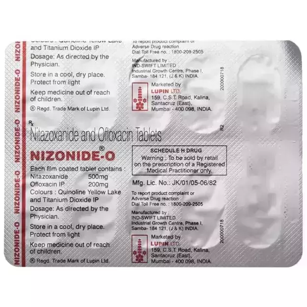 Nizonide-O Tablet is a combination of two medicines: Nitazoxanide and Ofloxacin. Nitazoxanide is an antiparasitic. It works by interfering with the energy metabolism of parasites, which ultimately causes their death. Ofloxacin kills bacteria by preventing them from reproducing and repairing themselves. Together, they treat your infection effectively.