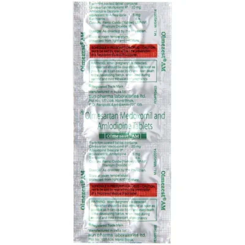 Olmezest AM Tablet is a combination of two medicines: Olmesartan Medoxomil and Amlodipine which lower blood pressure effectively. Olmesartan Medoxomil is an angiotensin receptor blocker (ARB) and Amlodipine is a calcium channel blocker (CCB). They work by relaxing the blood vessels and making the heart more efficient at pumping blood throughout the body.