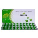 Osmega 300mg Capsule contain Omega-3 Fatty Acids 300mg providing Eicosapentaenoic Acid (EPA) 180mg and Docosahexaenoic Acid (DHA) 120mg. The omega-3 group consists of the essential FA Alpha-Linolenic acid (ALA) and its derivatives, Eicosapentaenoic Acid (EPA) and Docosahexaenoic Acid (DHA). Essential fatty acids are necessary because they cannot be synthesised by the body and must be obtained from diet or supplement. The combined nutrients suppress inflammation caused due to pollution or dirt in the air. The nutrients enhance aqueous tear production to ensure that eyes remain clean and offer clear vision. The Osmega capsules enhance secretion of Meibum that reduces dryness of eyes.