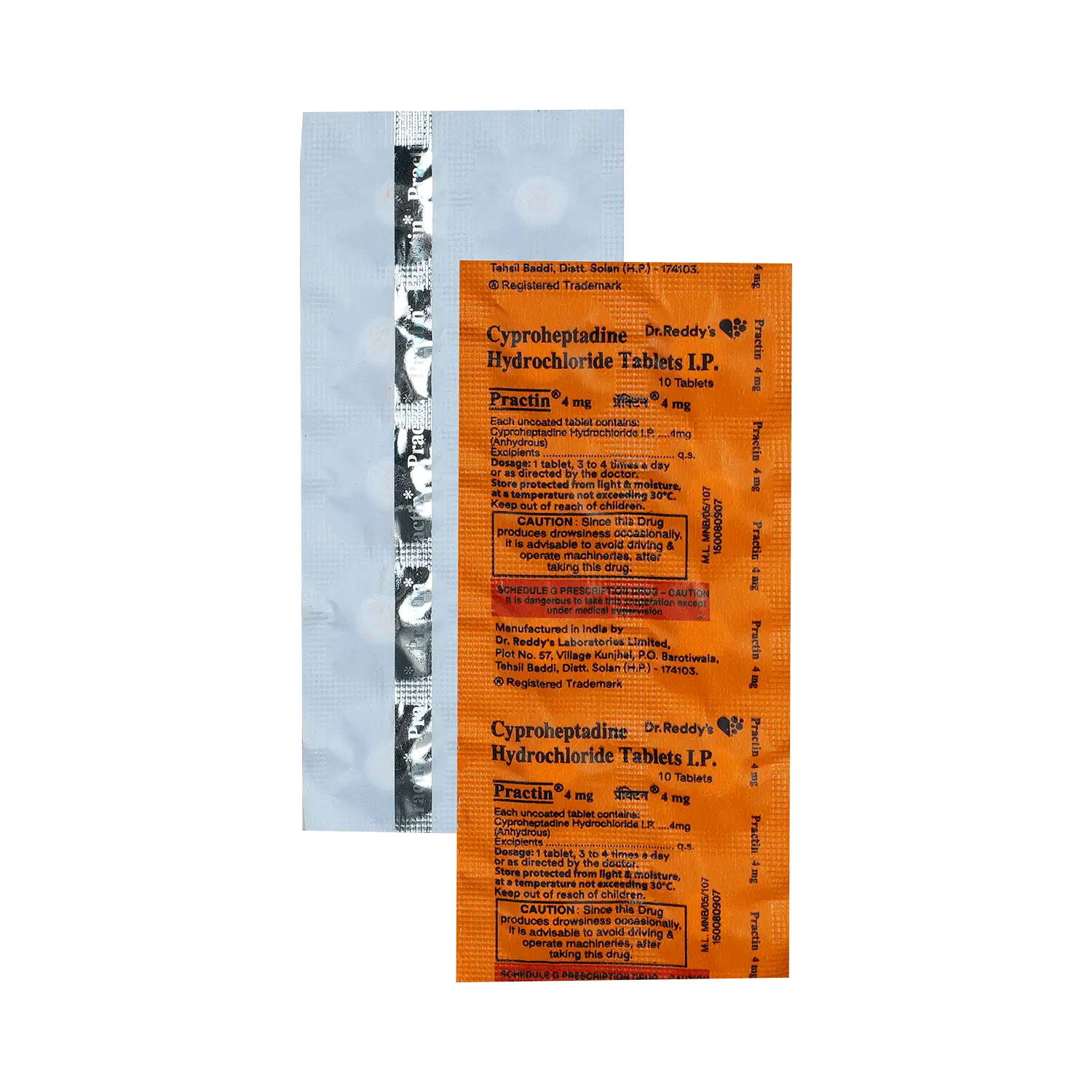 Practin 4mg Tablet is an antihistamine medication. It blocks the action of certain chemical messengers that are responsible for inflammation, congestion, itching, and other allergic reactions. Due to constant increased energy intake and stimulation of growth hormone secretion, it stimulates the appetite too.