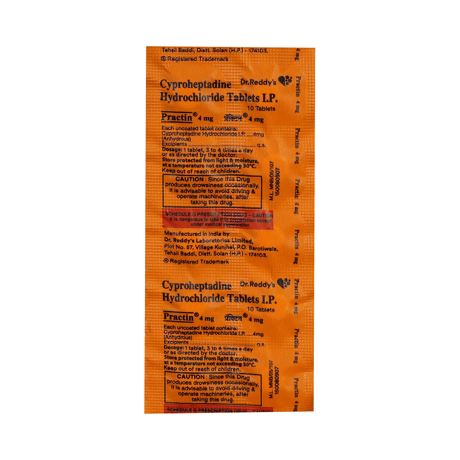 Practin 4mg Tablet belongs to a group of medicines called antihistamines. It is used in the treatment of various allergic conditions. It relieves symptoms of inflammation as well as itching, swelling and rashes. It is also used to treat loss of appetite (need for food). It is an effective hunger stimulant.
