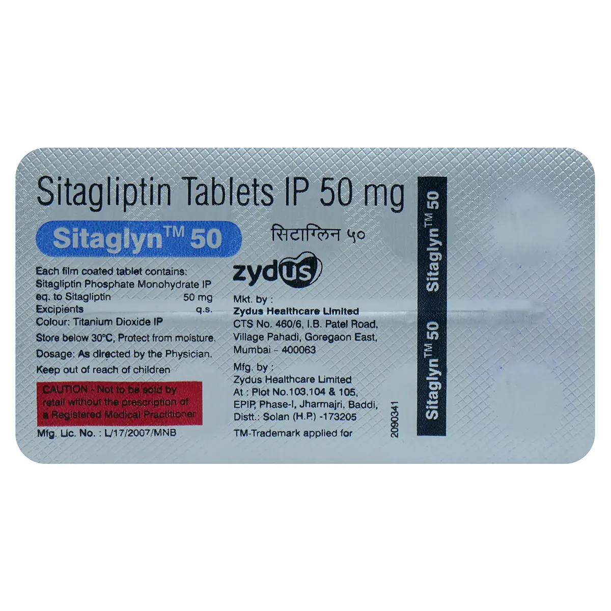 Sitaglyn 50 Tablet is a medicine used to treat type 2 diabetes mellitus. It is used together with a healthy diet and regular exercise to control blood sugar levels. This helps to prevent serious complications of diabetes like kidney damage and blindness.