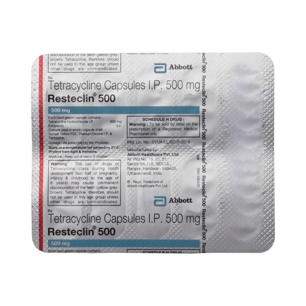 Resteclin 500 Capsule is also used to treat many sexually transmitted diseases. It should be taken on an empty stomach. You should take it regularly at evenly spaced intervals as per the schedule prescribed by your doctor. Taking it at the same time every day will help you to remember to take it. The dose of Resteclin 500 Capsule will depend on what you are being treated for, but you should always complete a full course of this antibiotic as prescribed by your doctor. Do not stop taking it until you have finished, even when you feel better. If you stop taking it early, some bacteria may survive and the infection may come back.