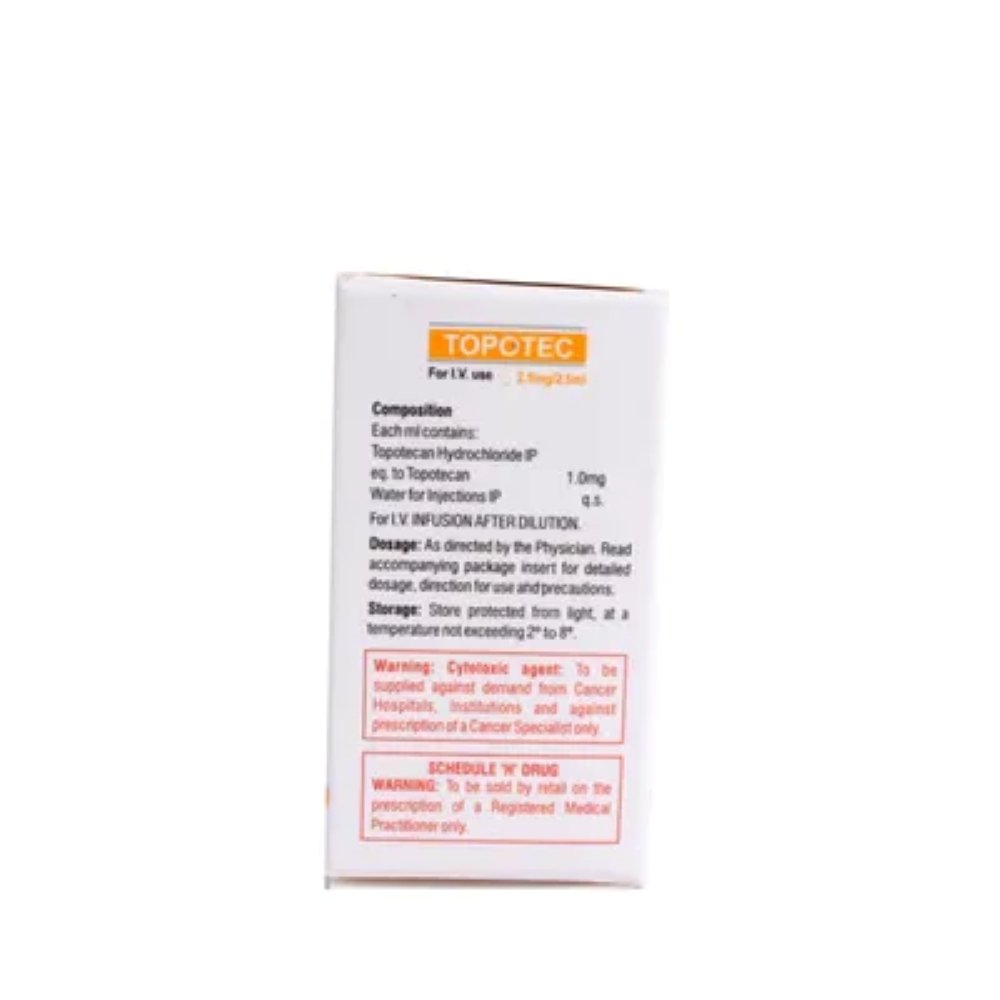 Topotec 2.5mg Injection is given as an IV infusion into vein by a qualified medical professional. Your doctor will decide what dose is necessary and how often you need to take it. This will depend on what you are being treated for and may change from time to time. You should take it exactly as your doctor has advised. Taking it in the wrong way or taking too much can cause very serious side effects. It may take several weeks or months for you to see or feel the benefits but do not stop taking it unless your doctor tells you to.