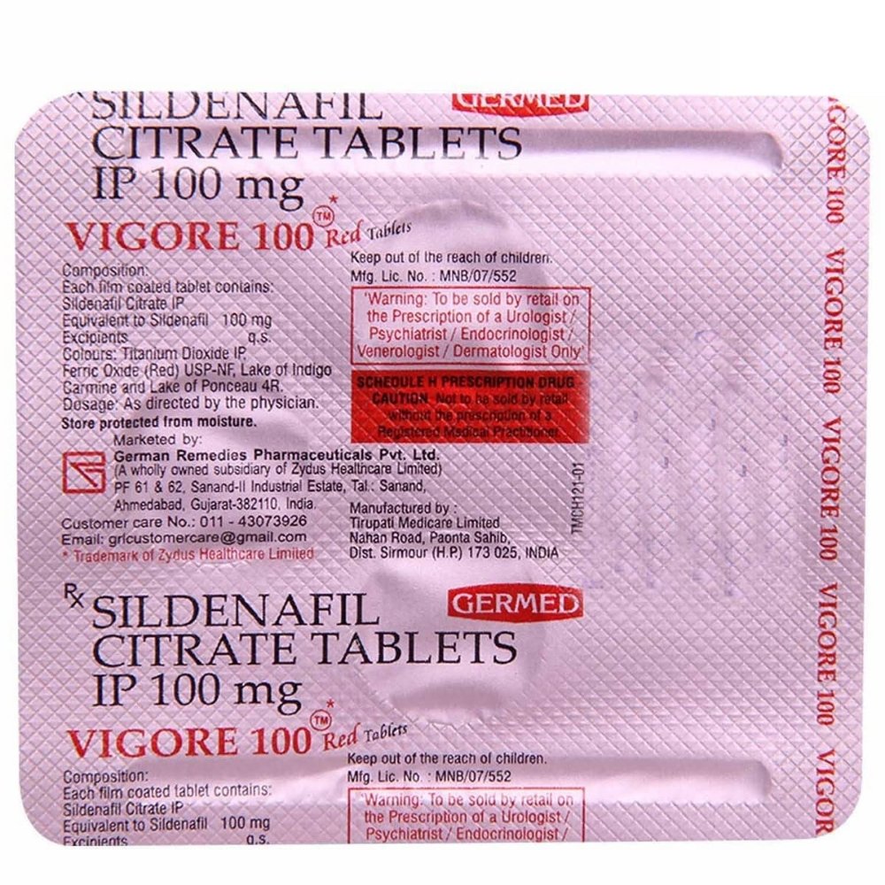 Vigore 100 Red Tablet is a prescription medicine used to treat erectile dysfunction (impotence) in men. It works by increasing blood flow to the penis. This helps men to get or maintain an erection. It belongs to a group of medicines known as phosphodiesterase type 5 (PDE 5) inhibitors.