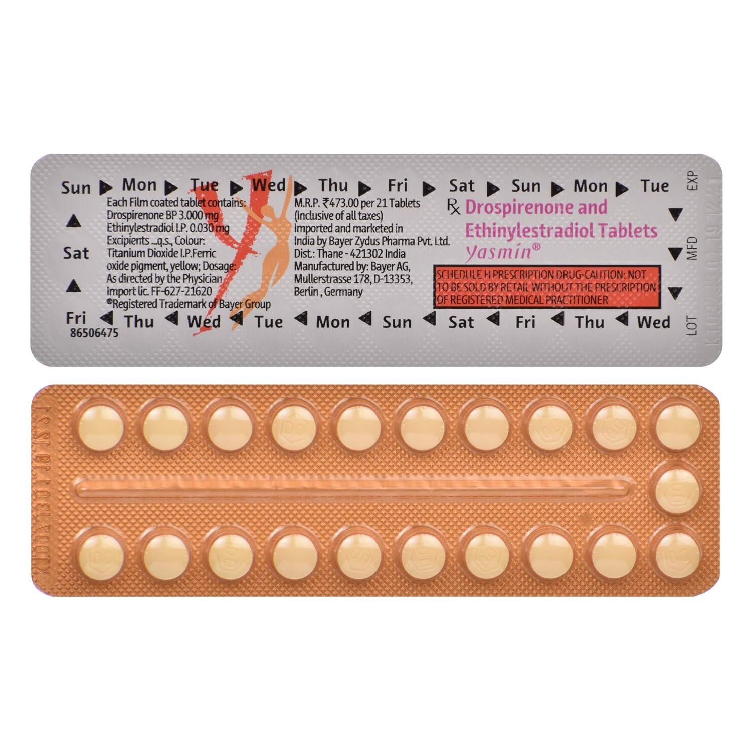 Yasmin Tablet can be taken with or without food, but take it at the same time to get the most benefit. It should be taken as per your doctor’s advice. You will have to take the pill on day one of your menstrual cycle and continue taking it for a whole month. Once the pack gets over, start with a new one. If you experience vomiting within 4 hours of dose intake, take another tablet. In case you missed your dose and you are late by 12 hours in taking the missed dose, use a condom during intercourse for a period of 2 days.Nausea, headache,  breast pain, and mood changes, vaginal discharge, and vaginal yeast infection are some commonly seen side effects of this medicine. If these bother you or appear serious, let your doctor know. There may be ways of reducing or preventing them. You might experience spotting or bleeding between menstrual periods or missed periods. Consult with your doctor if this occurs frequently or persists longer. Inform your doctor if you notice swelling and pain in your limbs, shortness of breath, chest pain or changes in vision, as it may be a sign of a blood clot.