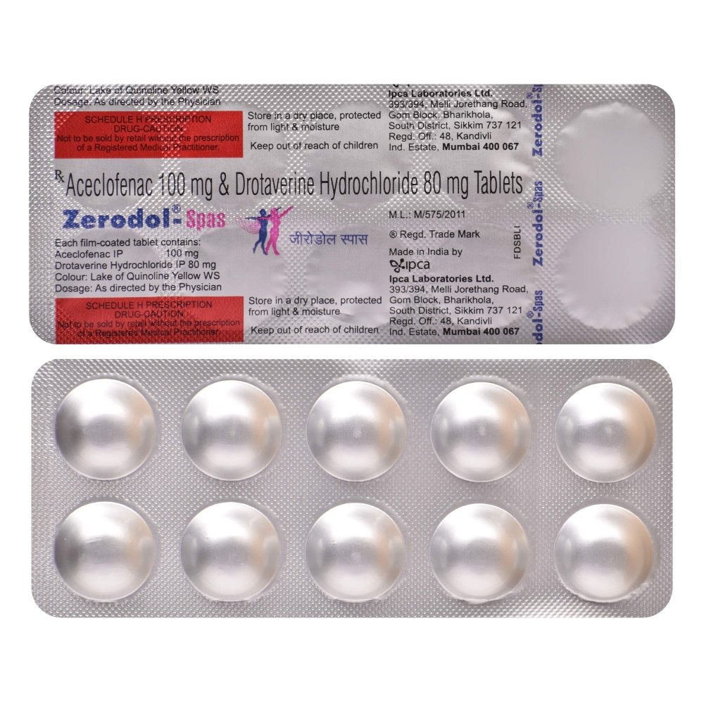 Zerodol Spas Tablet is a combination medicine used in the treatment of abdominal pain. It works effectively to reduce abdominal pain, bloating, discomfort and cramps by relaxing the muscles of the stomach and gut. It also blocks certain chemical messengers that cause pain and discomfort.