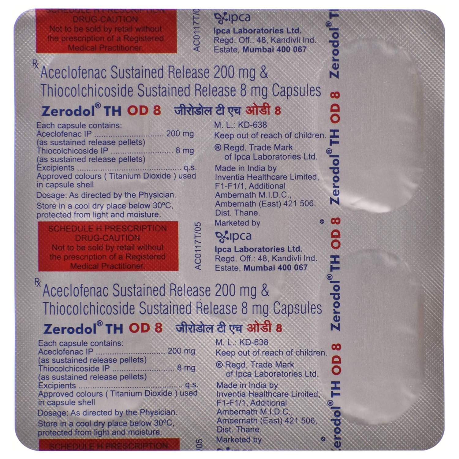 Zerodol TH OD 200 mg/8 mg Capsule SR is a combination medicine that contains a painkiller as well as a muscle relaxant. It is used to relieve pain, inflammation, and swelling in conditions that affect muscles. Also, it effectively relieves muscle stiffness or spasm, thereby improving muscle movement. It works by blocking chemical messengers in the brain that tell us we have pain.